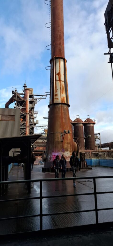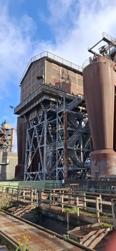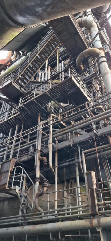 Unsere letzte Station war die Aussichtsplattform des „Hochofens 5“. Diese befindet sich ca. 50 Meter über der Erdoberfläche und ca. 76 Meter oberhalb des Meeresspiegels. Daher war der Aufstieg recht mühsam und für all diejenigen, die Höhenangst haben, nicht der einfachste. Jedoch hat es sich für die Aussicht gelohnt.