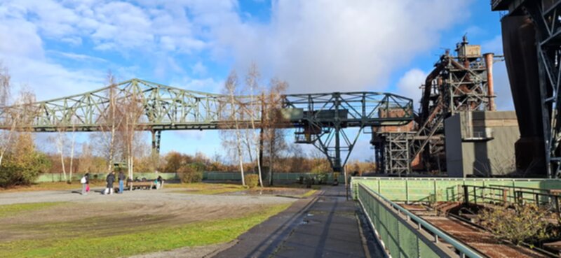 Die Gruppe, in welcher wir den Park besichtigten, wurde von Reinhard geleitet. Als erstes erzählte er uns, wo früher einmal Hochöfen standen, von denen man noch einige auf der „Route Industriekultur“ erkunden kann.