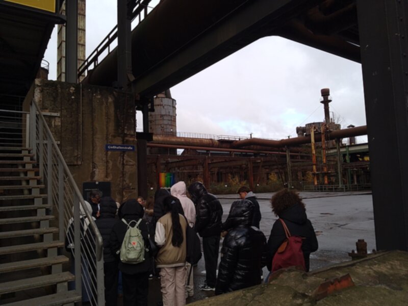 Unsere Exkursion in den Landschaftspark Duisburg startete am Montag, dem 17.11.2025 um 8 Uhr am Mönchengladbacher Hauptbahnhof. Die Klassen 8a, 8c und 8d fuhren mit der Regionalbahn in Richtung Duisburg Hauptbahnhof, wo wir in die Straßenbahn umstiegen. Den restlichen Weg legten wir zu Fuß zurück.